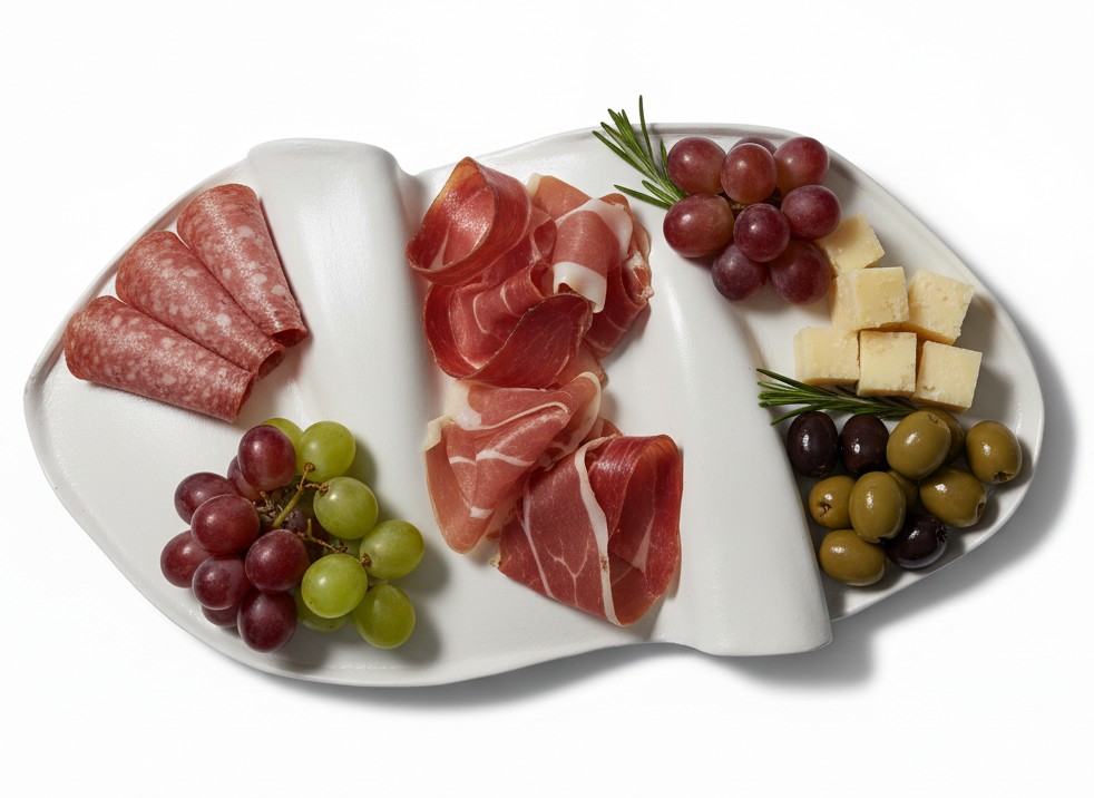 Den ljusa färgen lyfter serveringen och ger ett fräscht, elegant intryck. Perfekt för ost, chark och snacks!