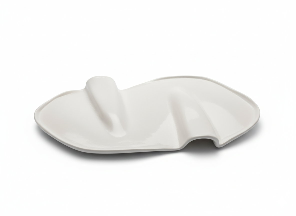 Denna lilla charkbricka är handgjord i vit lufttorkande lera och har en stilren och lugn design som passar alla typer av dukningar.